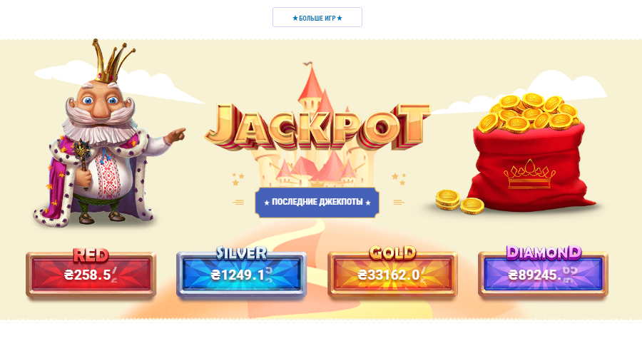 С каждым днем сайт King набирает все большую популярность среди сторонников азартных развлечений, это одно из первых онлайн казино. Высокий рейтинг ему обеспечивает наличие лицензии, проверенный, качественный и многоязычный софт. Король встречает своих гостей популярными автоматами Igrosoft и слотами других ведущих производителей. Также клиентов ждут щедрая бонусная политика и великолепный дизайн игрового зала. По отзывам завсегдатаев – это практически идеальный ресурс.