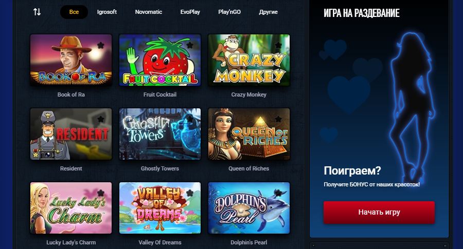 - Игровые автоматы (это и так понятно, так как это наиболее популярный вид игр на этом, и многих других сайтах казино).